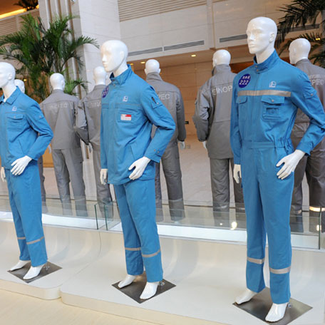勞保服裝的主體顏色應區(qū)別于作業(yè)場所背景色,不得影響各種色光信號的正確判斷。因此, 1、油田板塊有國旗紅和橘紅色兩種,其中橘紅色用于海上作業(yè)。 2、煉化板塊采用煉化藍。 3、銷售板塊有藍色和紅黑色兩種顏色,日前樣衣正在試穿,顏色待定。 4、工程建設板塊有煙灰色和湖藍色兩種,企業(yè)自行選擇其中一色。44,42,45,76,92,94,39,121,122